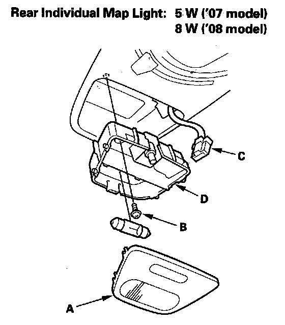 Rear Individual Map Light Test/Replacement1. Carefully pry off the lens (A) with a small screwdriver.
