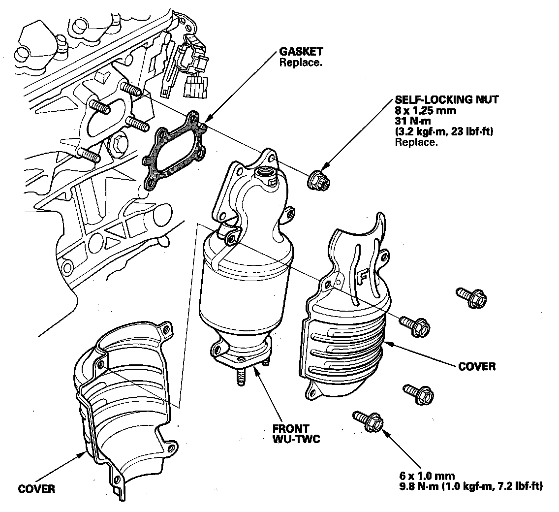 7. Carefully install the front WU-TWC with a new gasket and new self-locking nuts. Tighten the nuts in a crisscross pattern in two or three steps.