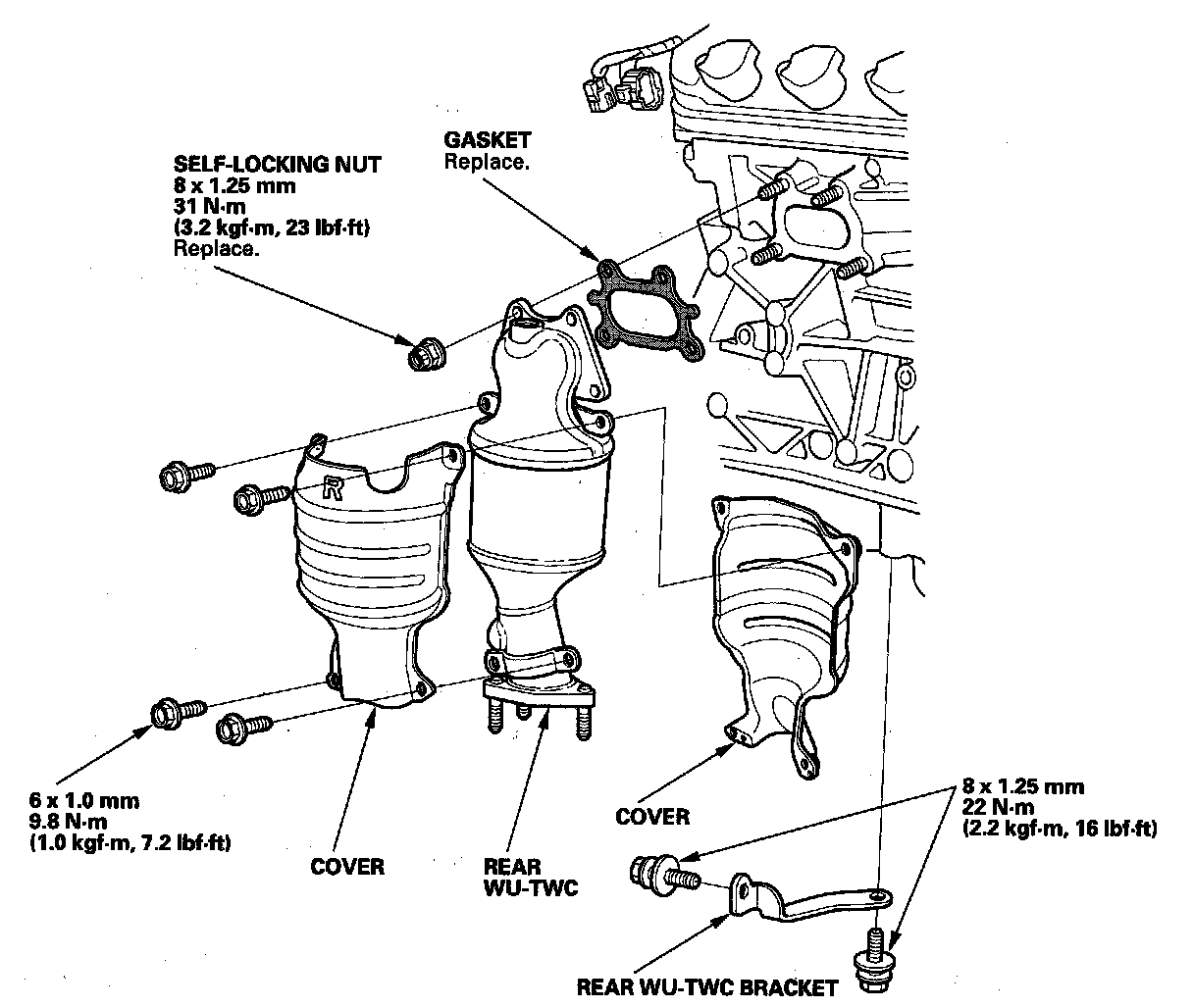 8. Carefully install the rear WU-TWC with a new gasket and new self-locking nuts. Tighten the nuts in a crisscross pattern in two or three steps.