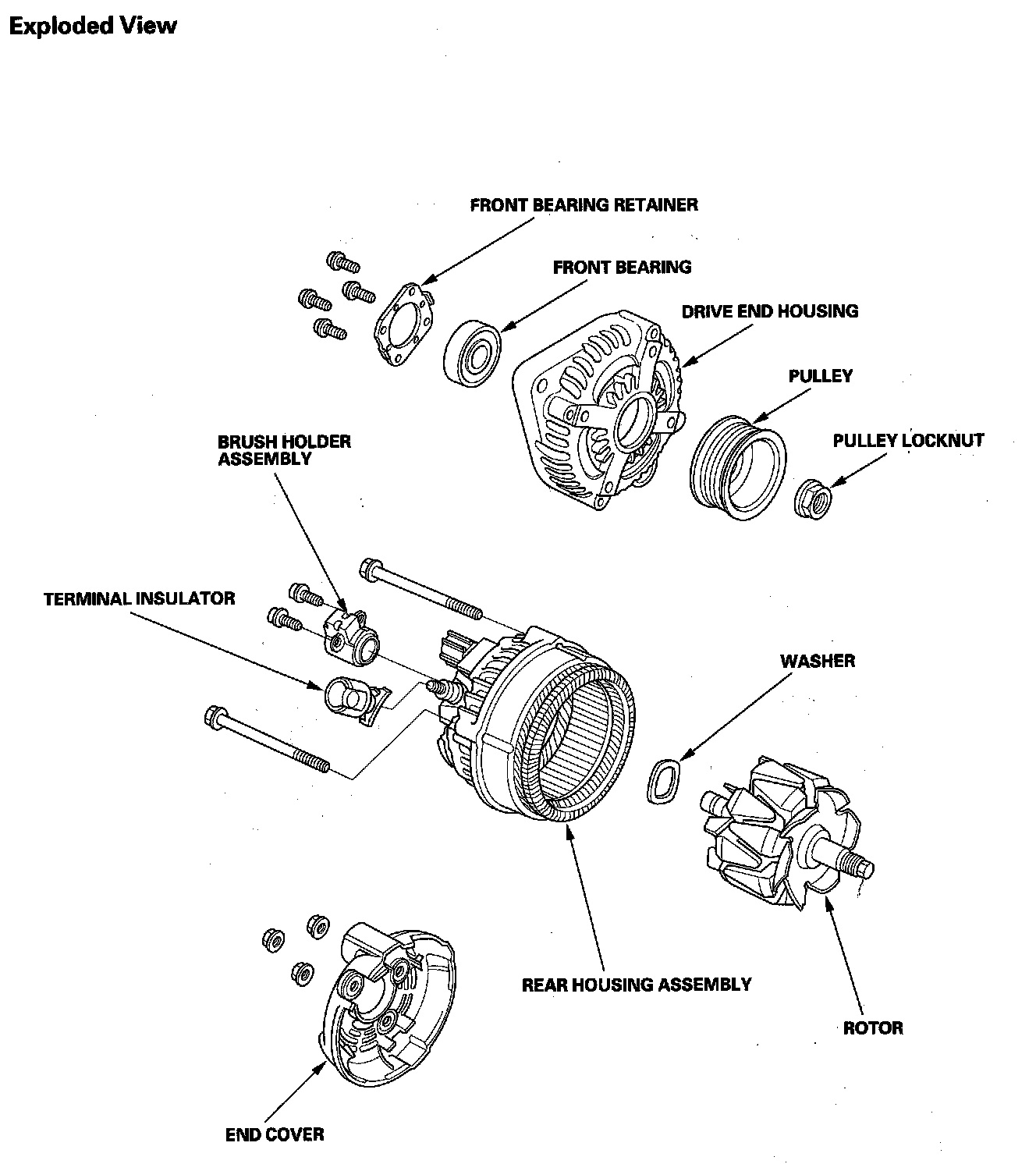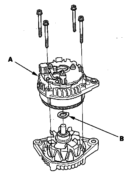 22. After assembling the alternator, turn the pulley by hand to make sure the rotor turns smoothly and without noise.