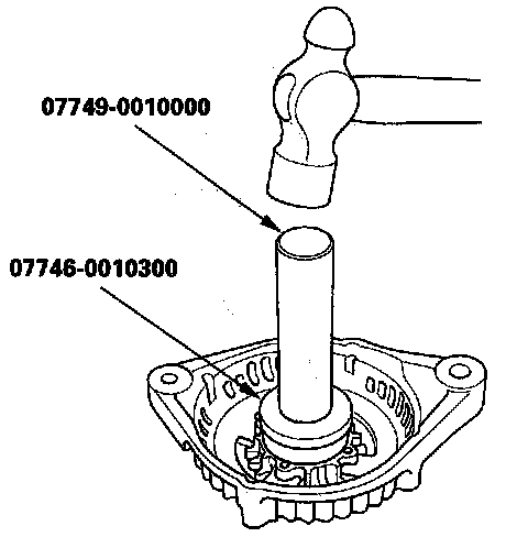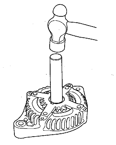 12. Install a new front bearing in the drive-end housing with a hammer, the handle driver, and attachment.