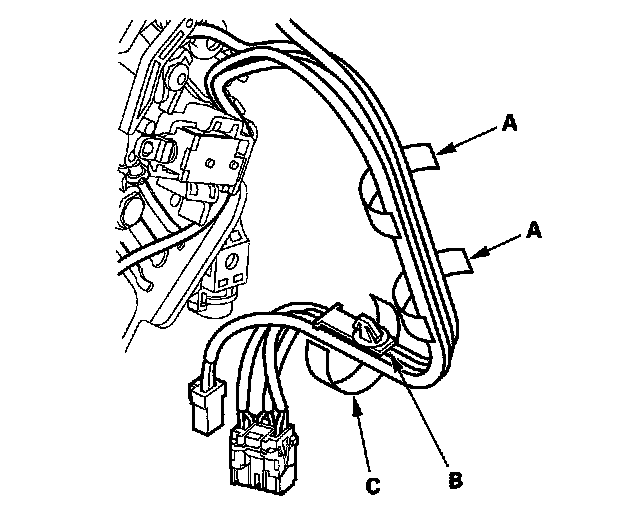 12. Tie the harnesses together into bundles with new tape (A) in two places.