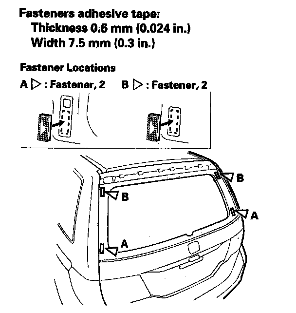 11. Attach the fasteners (A, B) with adhesive tape to the tailgate as shown.