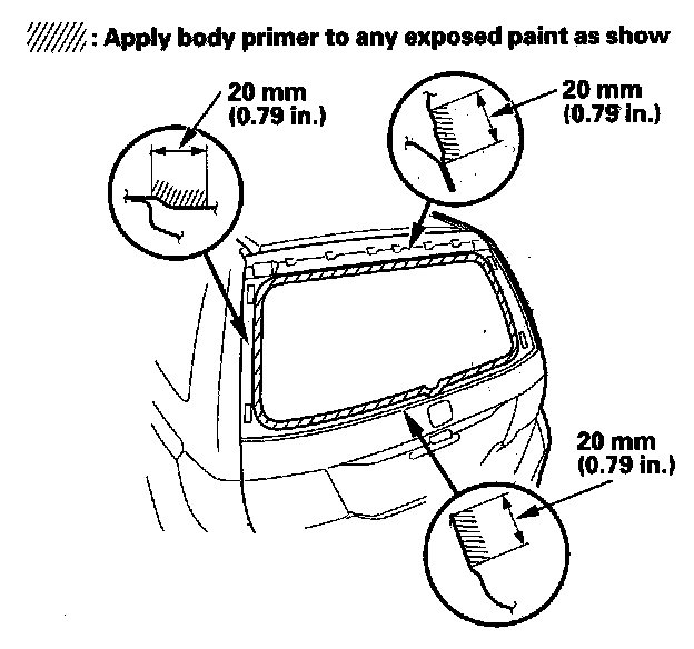 - Never touch the primed surfaces with your hands. If you do, the adhesive may not bond to the rear window properly, causing a leak after the rear window is installed.