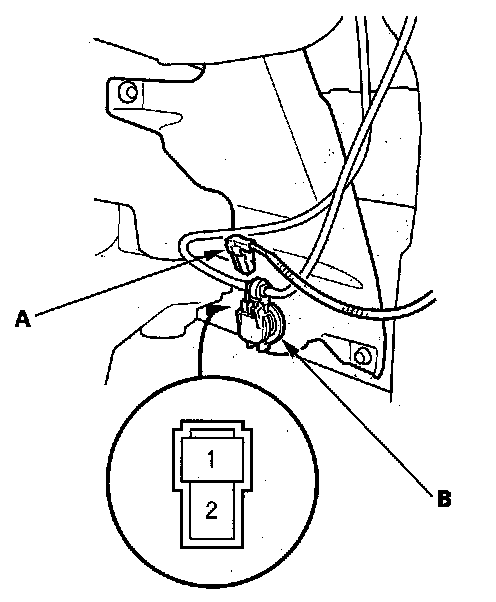 2. Disconnect the 2P connector (A) from the washer motor (B).