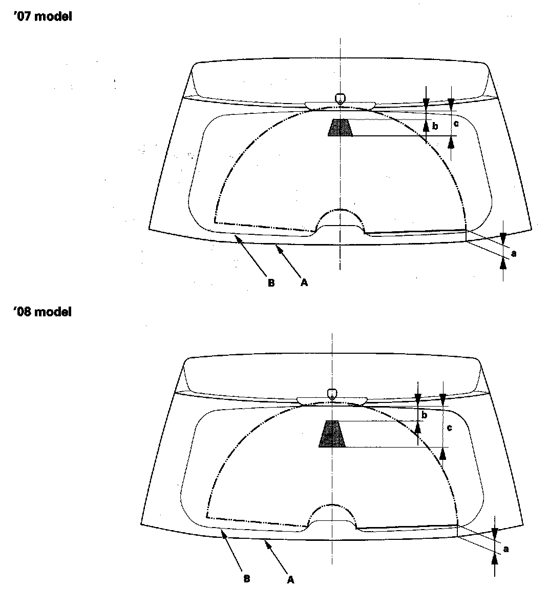 a. Position at about 1.8 in. (46 mm) from the bottom end of rear window (A)