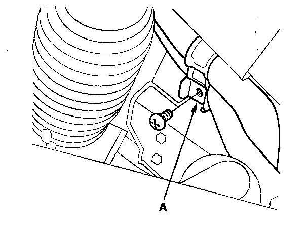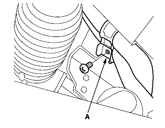 6. Remove the screw from the A/C line clamp (A) next to the steering rack.
