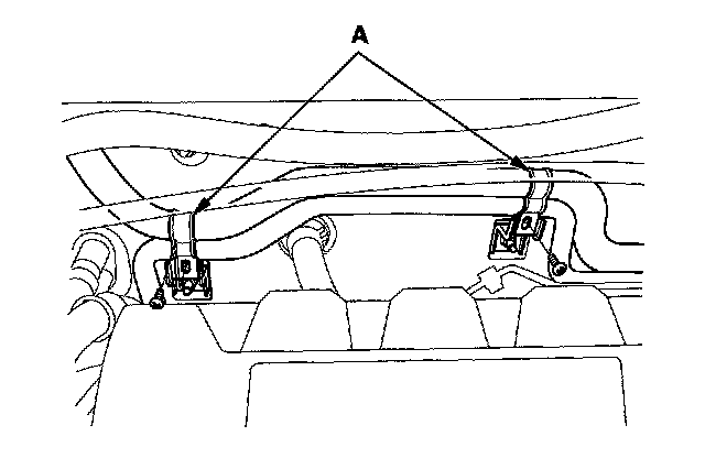 10. Install the screws into the two A/C line clamps (A) along the engine compartment bulkhead.