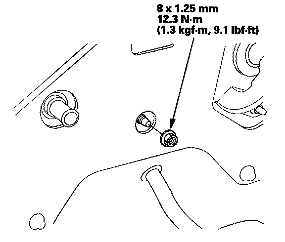 7. Remove the mounting nut from the heater unit. Take care not to damage or bend the fuel lines and the brake lines, etc.