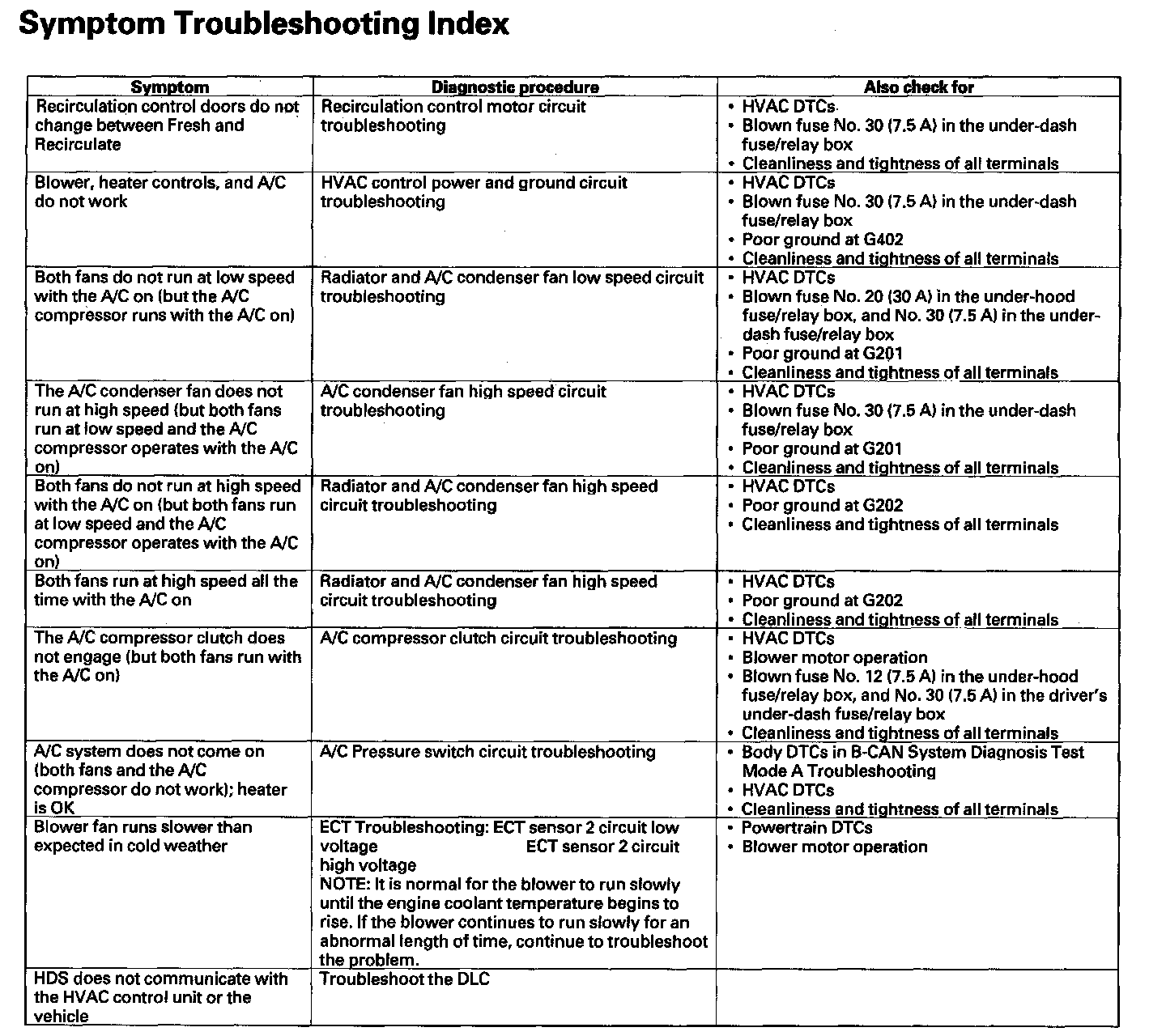 Symptom Troubleshooting Index: