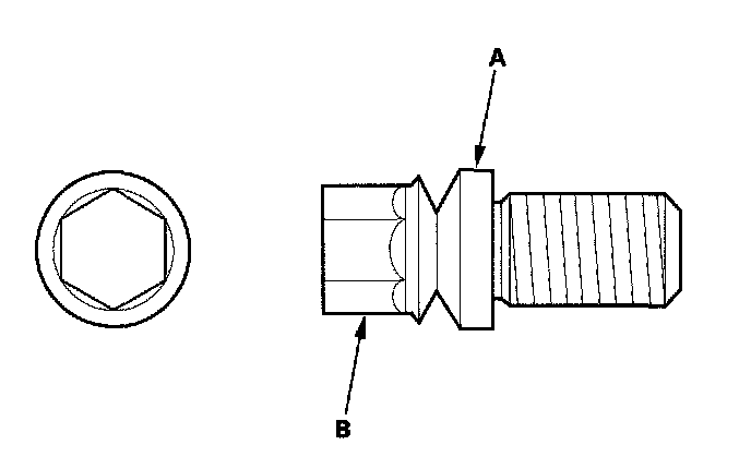 8. Tighten the shear bolts (A) until the hex heads (B) twist off.