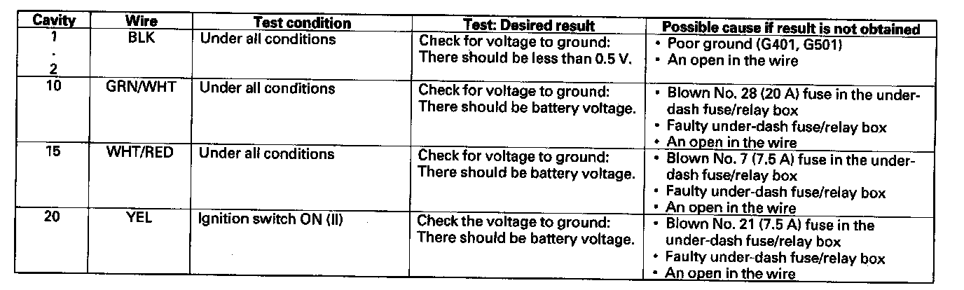 Master Switch Input TestNOTE: Make sure the ignition switch is OFF before disconnecting the connectors.