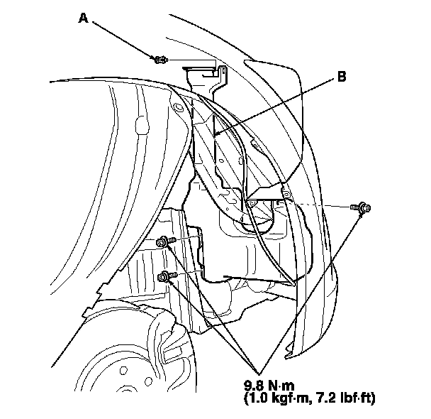 1. Remove the right inner fender. Front Inner Fender Replacement