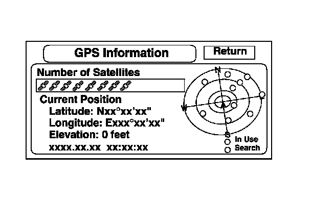 - If the 3D icon is shown above the yellow dots, this implies that at least four satellites are available for map positioning, and the GPS indicator on the map screen will be green. See the Global Positioning System detailed explanation in the System Description. Description and Operation