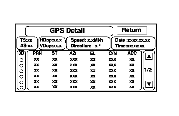 By pressing and holding the MENU button for 10 seconds, a GPS Detail screen appears. This screen displays real time incoming satellite positional data. Most of the information shown on this screen is for factory use, however some of the data can indicate partial GPS signal interference.