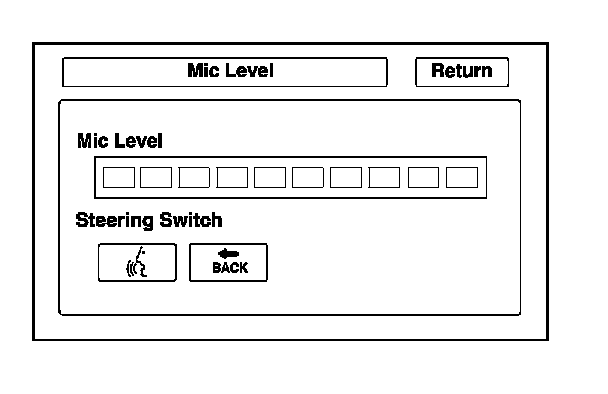 - Press the navigation TALK button on the steering wheel, wait unit you hear a beep, and in a normal voice say "testing". The TALK indicator on the screen should momentarily turn green, and the text "Now Recording..." should appear in yellow. If the Mic Level indicator on the screen does not briefly turn green, then check the wiring from the navigation TALK button to the navigation unit. If there is no Mic Level movement when you speak, or if all the bars are filled without speaking, then you should check the wires running from the microphone to the control unit for opens or shorts. If the wires are OK, substitute a known good microphone, and recheck.