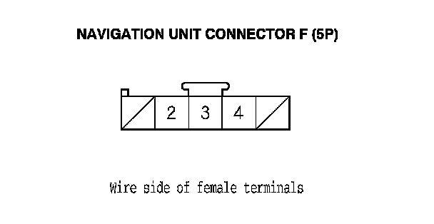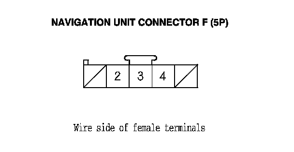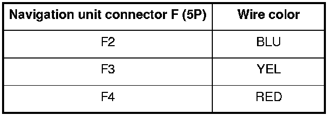 5. Check for continuity between each wire in the navigation unit connector F (5P) according to the table.