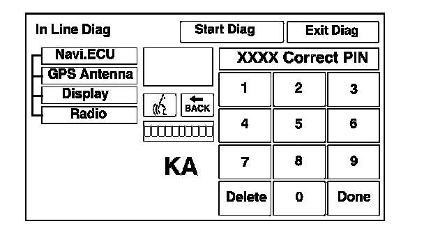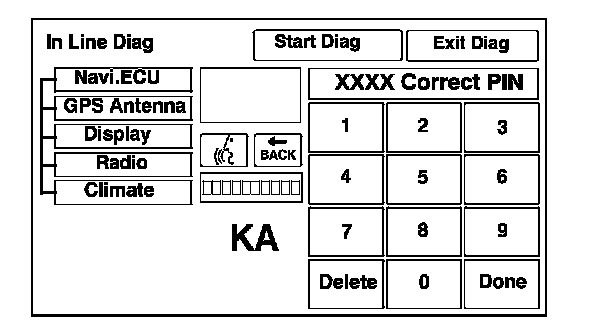 1. When a navigation control unit is powered up for the first time at the factory, the factory diagnosis screen (In Line Diag) appears. Normally the factory does the steps necessary to verify proper operation and terminate the factory diagnostic. Until the proper confirmation sequence is done, the screen appears every time the vehicle is started.