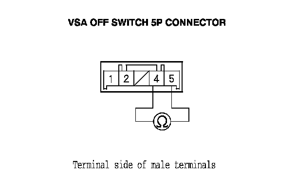 5. Check for continuity between the VSA OFF switch 5P connector terminals No. 4 and No. 5. There should be continuity at all times.