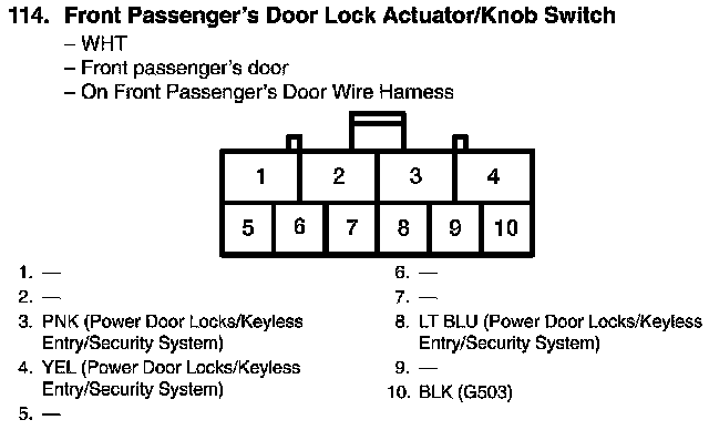 View 114 Front Passenger's Door Lock Actuator/Knob Switch Connector View