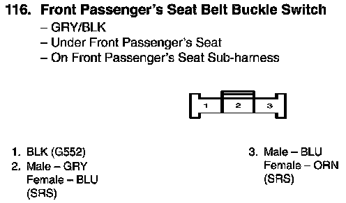 View 116 Front Passenger's Seat Belt Buckle Switch Connector View
