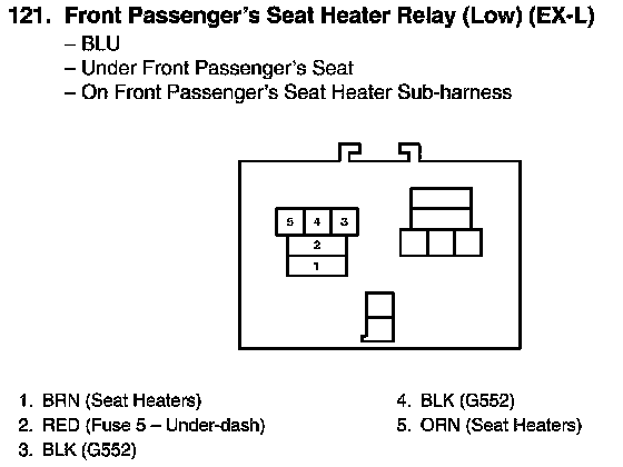 View 121 Front Passenger's Seat Heater Relay (Low) Connector View