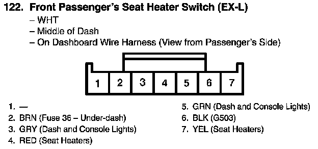 View 122 Front Passenger's Seat Heater Switch Connector View