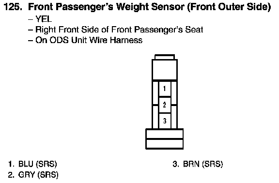 View 125 Front Passenger's Weight Sensor (Front Outer Side) Connector View