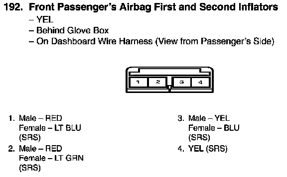 View 192 Front Passenger's Airbag First And Second Inflators Connector View