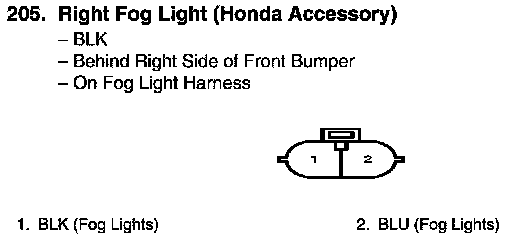 View 205 Right Fog Light Connector View (Honda Accessory)