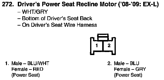 View 272 Driver's Power Seat Recline Motor Connector View