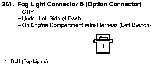View 281 Fog Light Connector B (Option Connector) Connector View