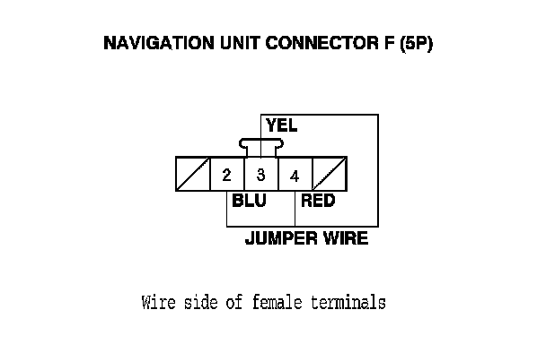 10. Connect navigation unit connector F (5P) No. 2, 3, and No. 4 terminals with a jumper wire.