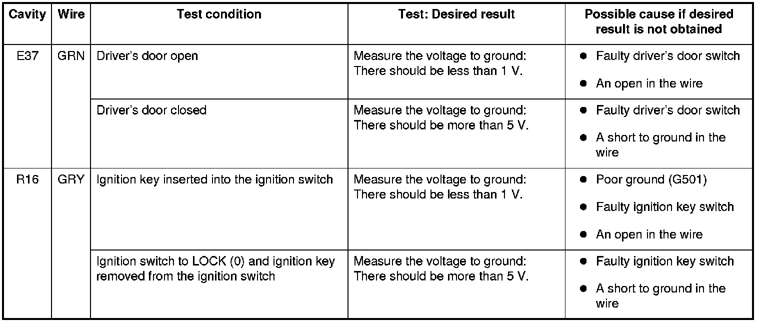 - If the beeper sounds and the seat belt reminder light flashes, go to step 13.