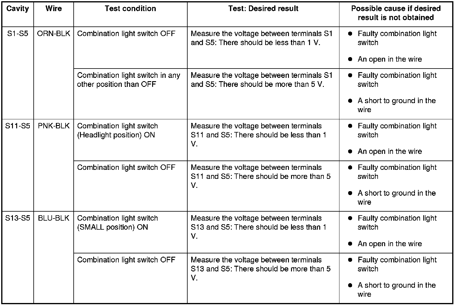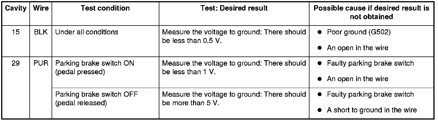 5. Reconnect the connectors, then do these input tests at the following connector.
