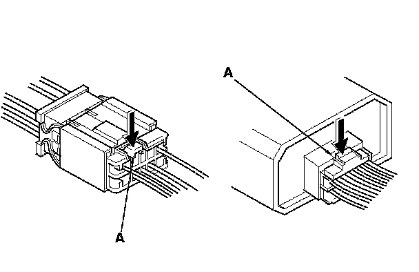 - Before connecting connectors, make sure the terminals (A) are in place and not bent.