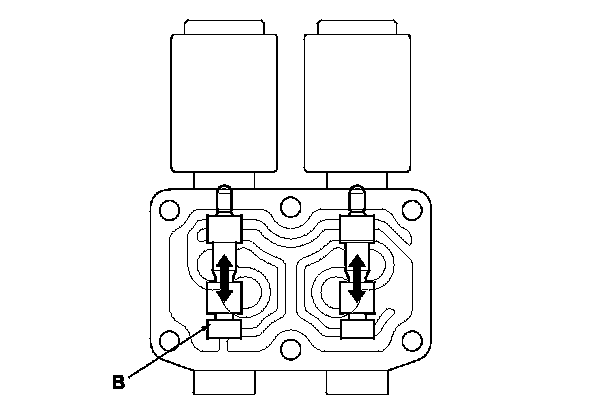 14. Disconnect one of the jumper wires and, check valve movement at the fluid passage in the valve body mounting surface. If the valve binds or moves sluggishly, or if the solenoid valve does not operate, replace A/T clutch pressure control solenoid valves B and C.