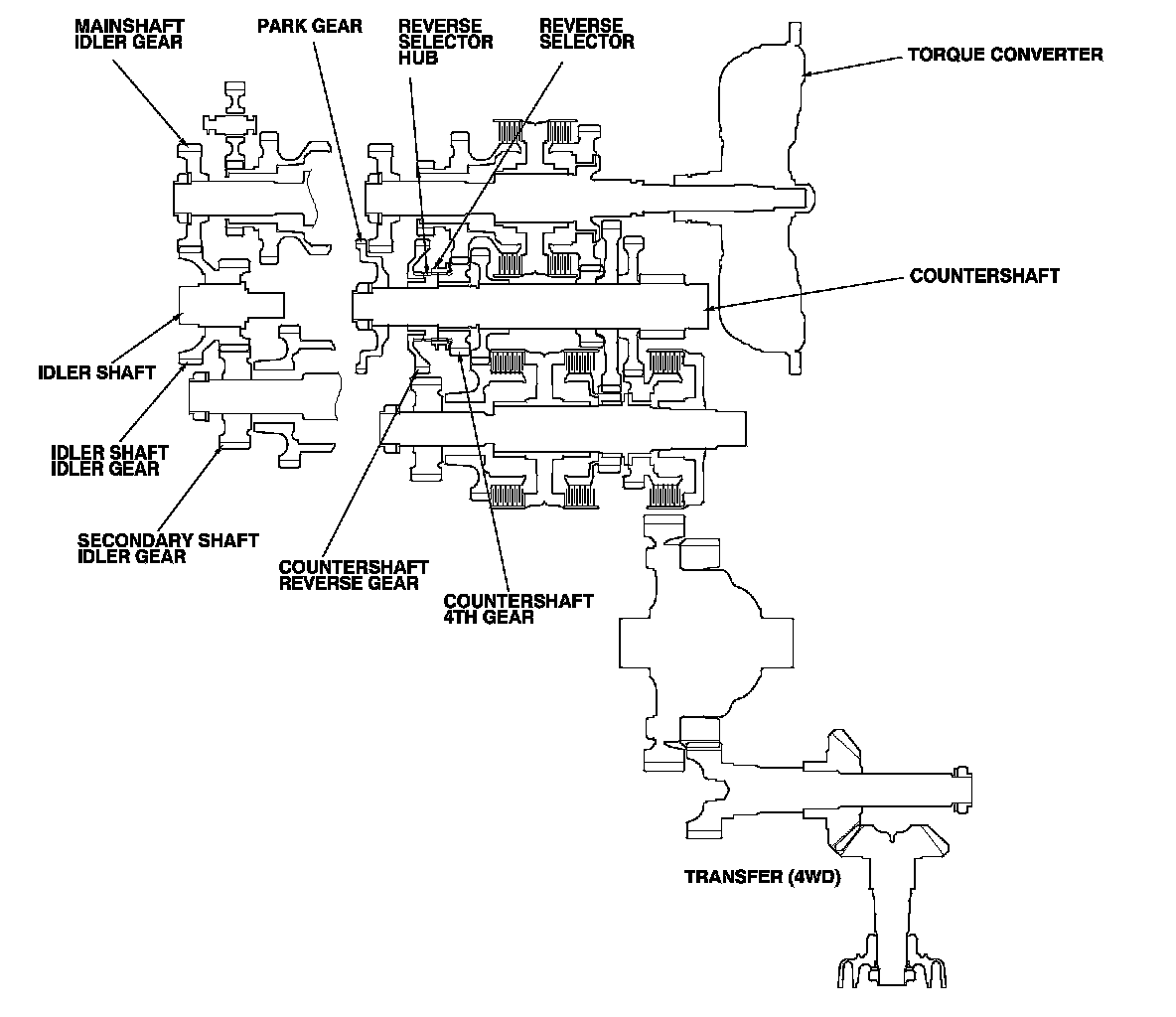- When shifted from D, the reverse selector engages with the countershaft 4th gear and the reverse selector hub, and 4th gear engages with the countershaft.
