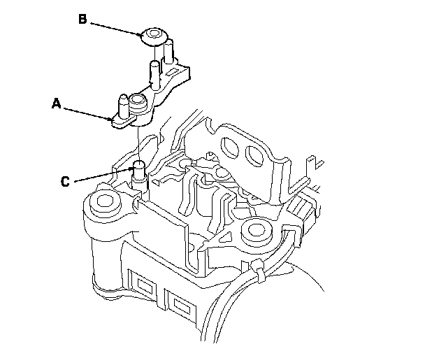 4. Apply silicone grease to the pin (C) on the shift lever bracket base, and install the shift lock stop over the pin. Keep the connector terminals free of silicone grease.