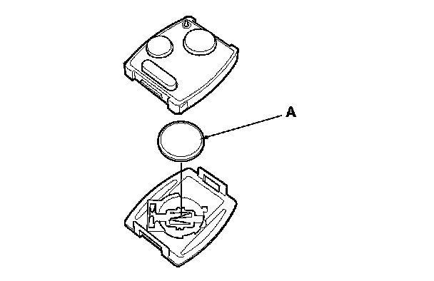4. Replace the transmitter battery (A) with a new one, and try to lock and unlock the doors with the transmitter by pressing the lock or unlock button five or six times.