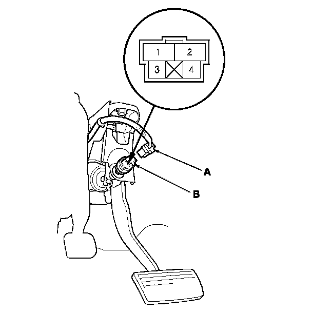 1. Disconnect the 4P connector (A) from the brake pedal position switch (B).