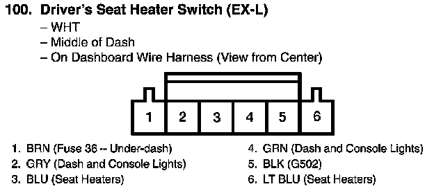 View 100 Driver's Seat Heater Switch Connector View