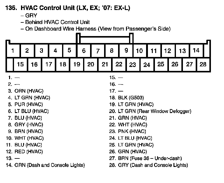 View 135 HVAC Control Unit Connector View