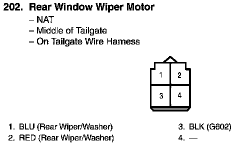 View 202 Rear Window Wiper Motor Connector View