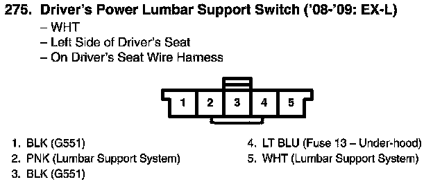 View 275 Driver's Power Lumbar Support Switch Connector View