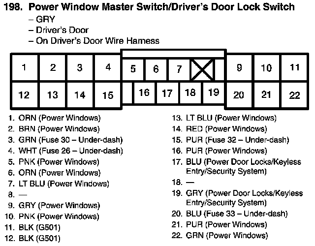 Power Window Master Switch/Driver's Door Lock Switch Connector View