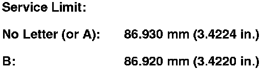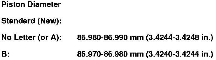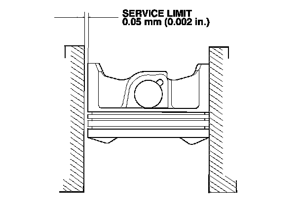 7. Calculate the difference between the cylinder bore diameter and the piston diameter. If the clearance is near or exceeds the service limit, inspect the piston and cylinder bore for excessive wear.
