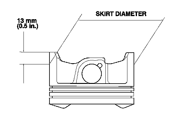 3. Measure the piston diameter at a point 13 mm (0.5 in.) from the bottom of the skirt. There are two standard-size pistons (No Letter or A, and B). The letter is stamped on the top of the piston. Letters are also stamped on the block as cylinder bore sizes.