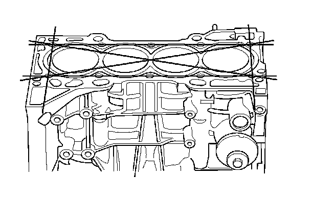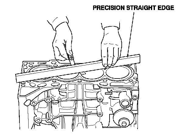 6. Check the top of the block for warpage. Measure along the edges, and across the center as shown.