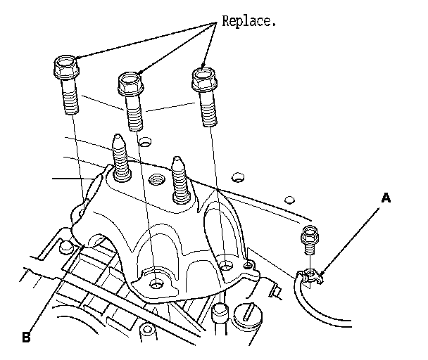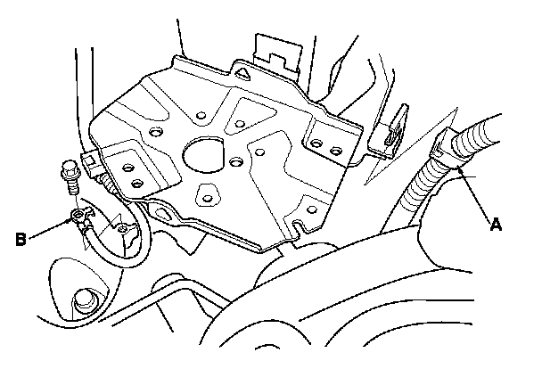 11. Remove the harness clamp (A), then remove the PCM bracket (B).